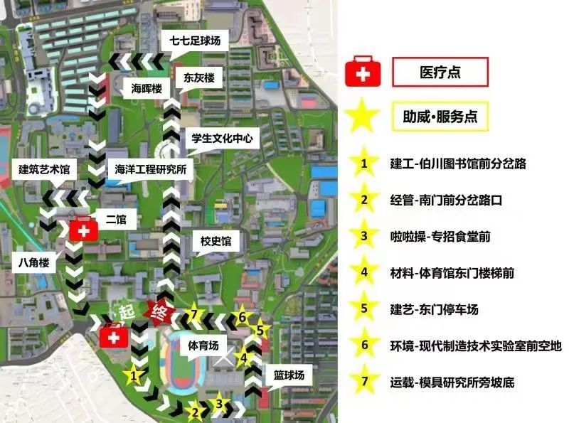 本次活动不设排名,闭门时间1小时,请各位校友师生注意安全,量力而行。活动现场设有医疗点及学部(学院)助威·服务点,如有身体不适或特殊情况,请及时示意工作人员。
