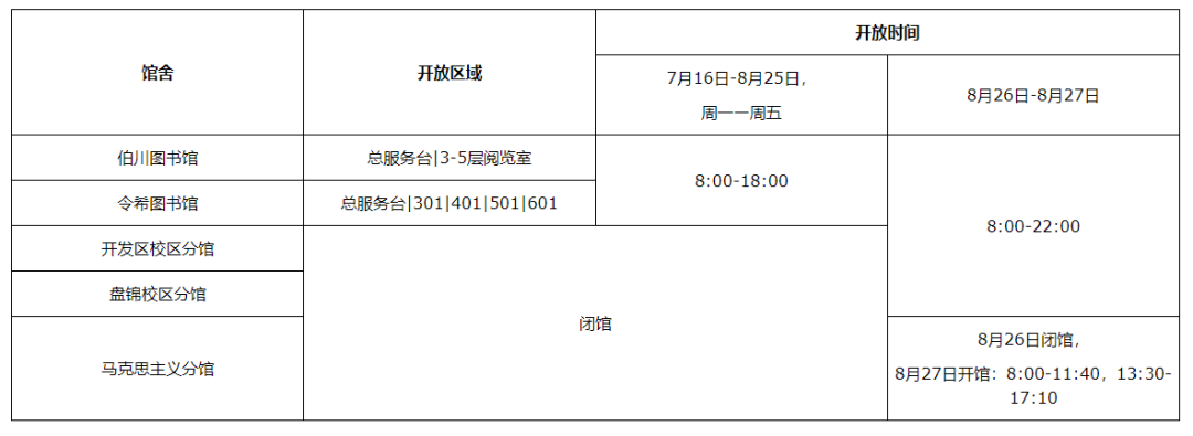 校友出示电子校友卡,即可入图书馆参观。详细开放时间见下表: