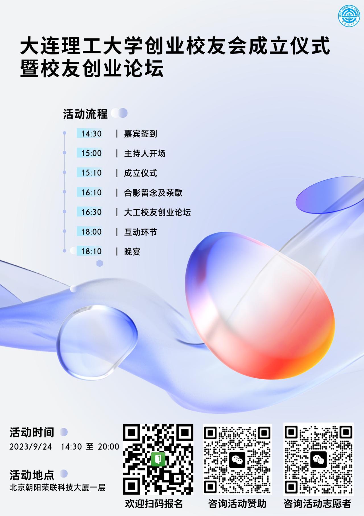 (1)🚩大工创业校友会成立仪式:母校授旗授牌、领导寄语、介绍组织情况、发布创业校友专属服务等