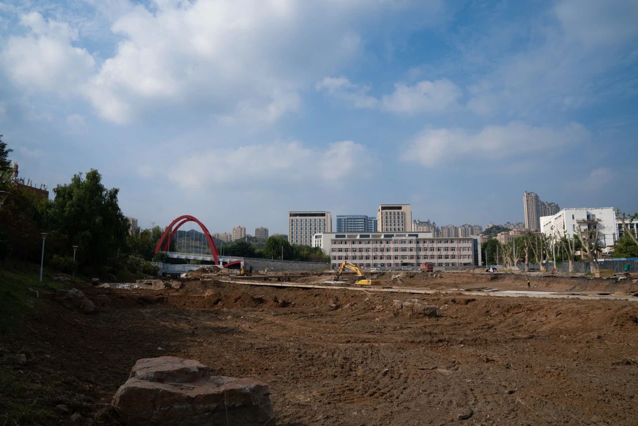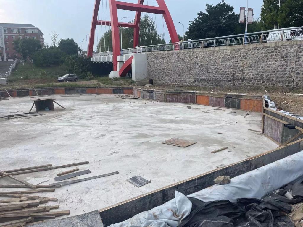 目前进度:荷花池分为主体工程、软景、装饰附属工程,现已完成主体工程的混凝土浇筑。
