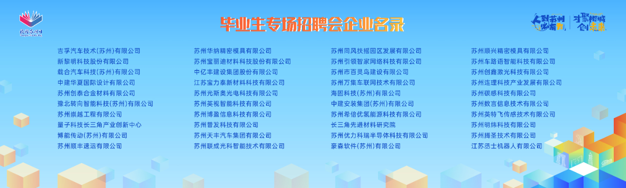 本次活动中,将有超60家苏州市、相城区的重点企业、国有企业、领军人才企业、科技型企业发布招聘岗位需求,与大连理工大学在校学子现场洽谈。