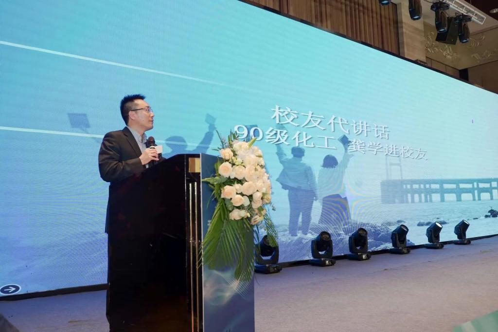 苏州校友会秘书长邹春朗作为兄弟校友会代表祝贺无锡校友会成立,希望在未来的日子里,两地校友会能够保持密切联系,共同努力,为地方和母校的繁荣和发展贡献自己的力量,共同书写校友会发展的崭新篇章。