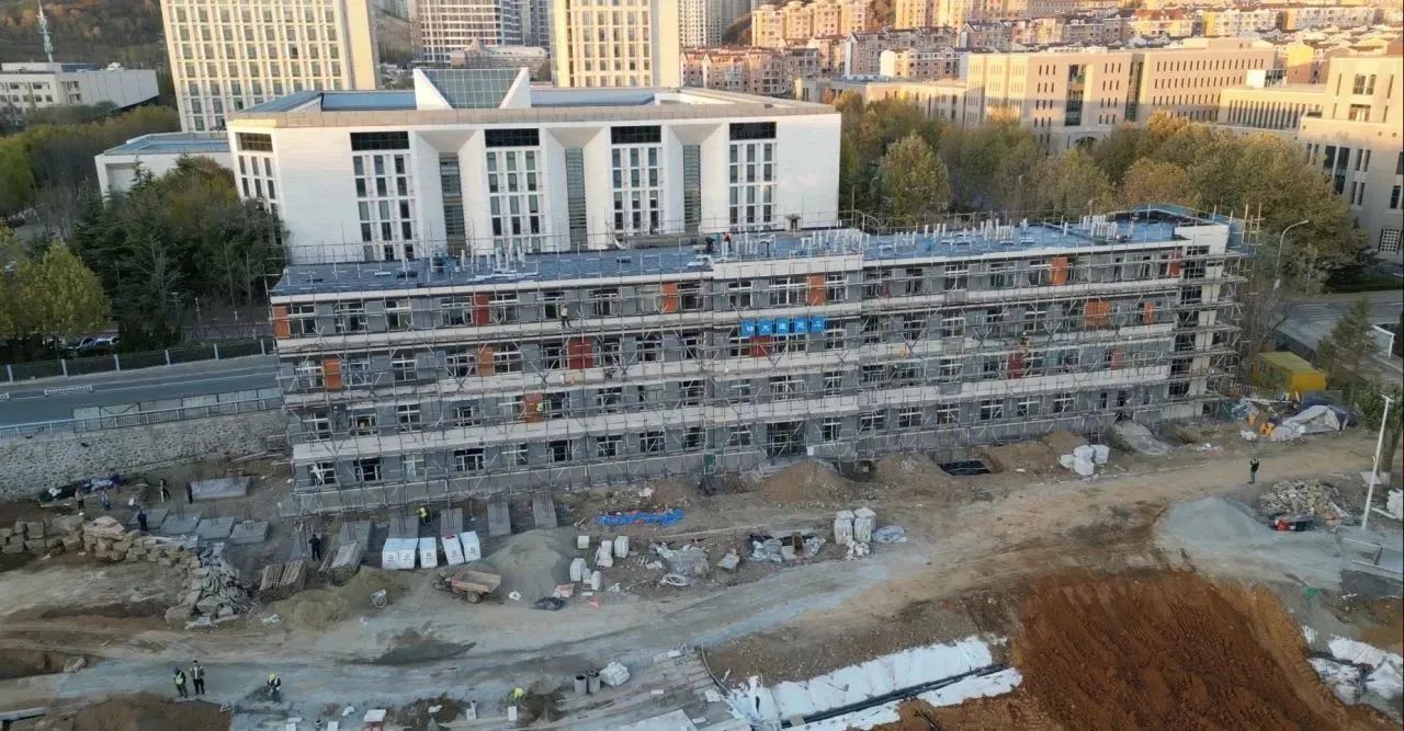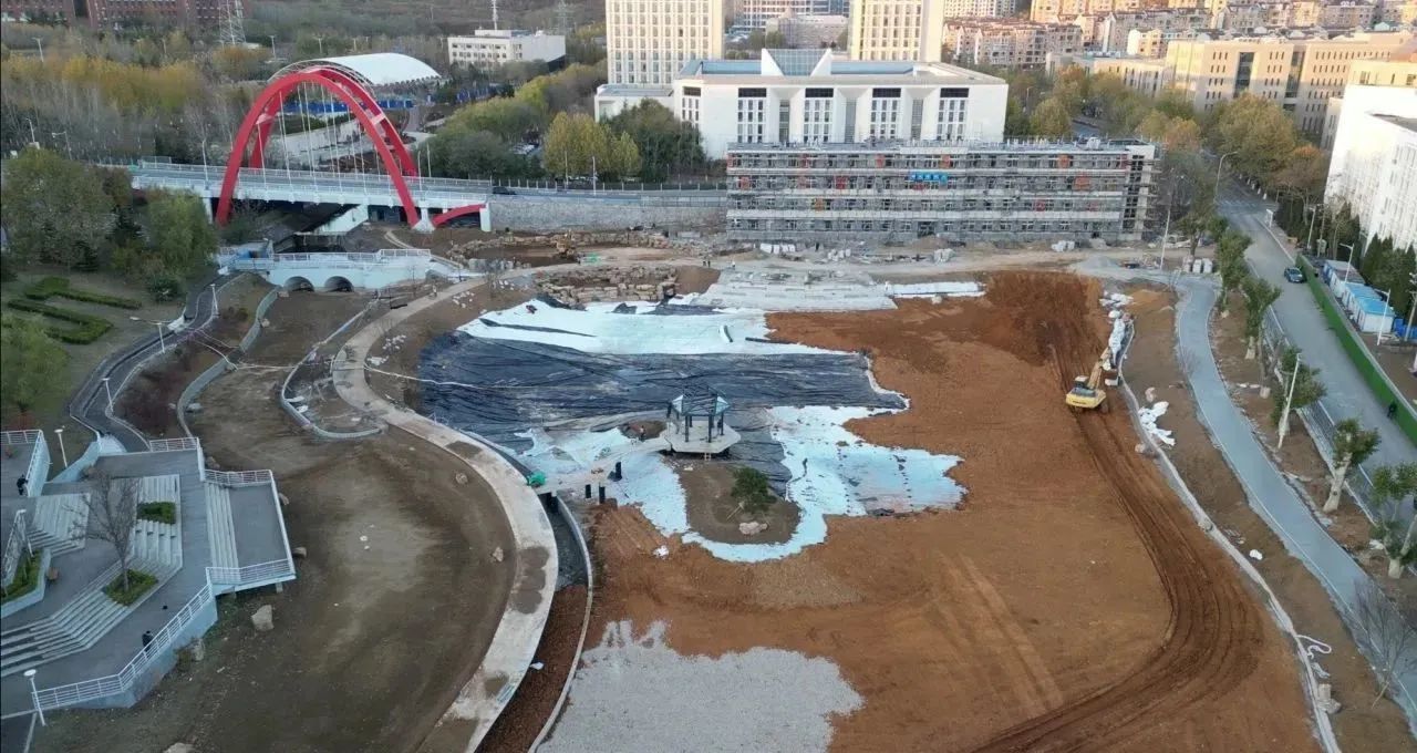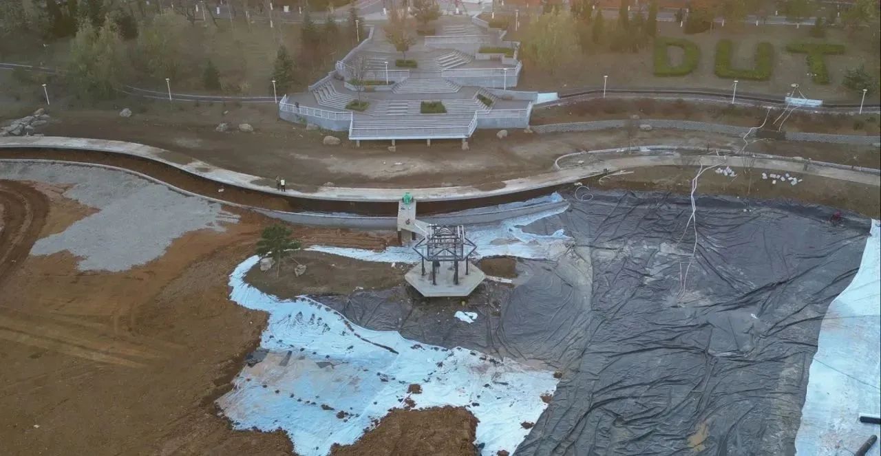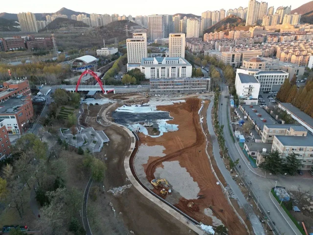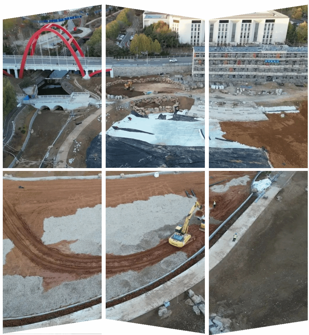 本月人工湖周边路面除塑胶跑道外将全部完成